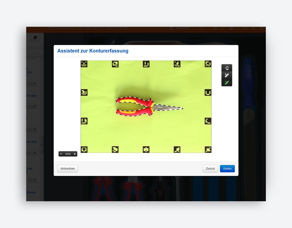 Tools that are not stored in the catalog can also be taken into account when planning foam inserts. The innovative smartphone scan is available for this purpose.